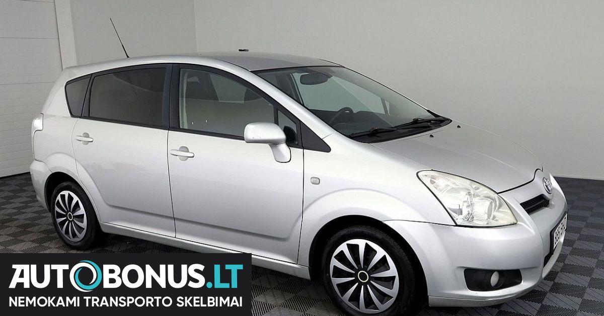 Toyota Corolla, 2.2 l., vienatūris, 2008-07 m. Užsisakykite automobilį neišeidami iš namų. Pristatymas į bet kurią Lietuvos ar Latvijos vietą kainuoja 250 EUR ir trunka 3–4 darbo dienas. Apmokėjimas – ats... Toyota Avensis Verso 365335 Toyota EUR 1799